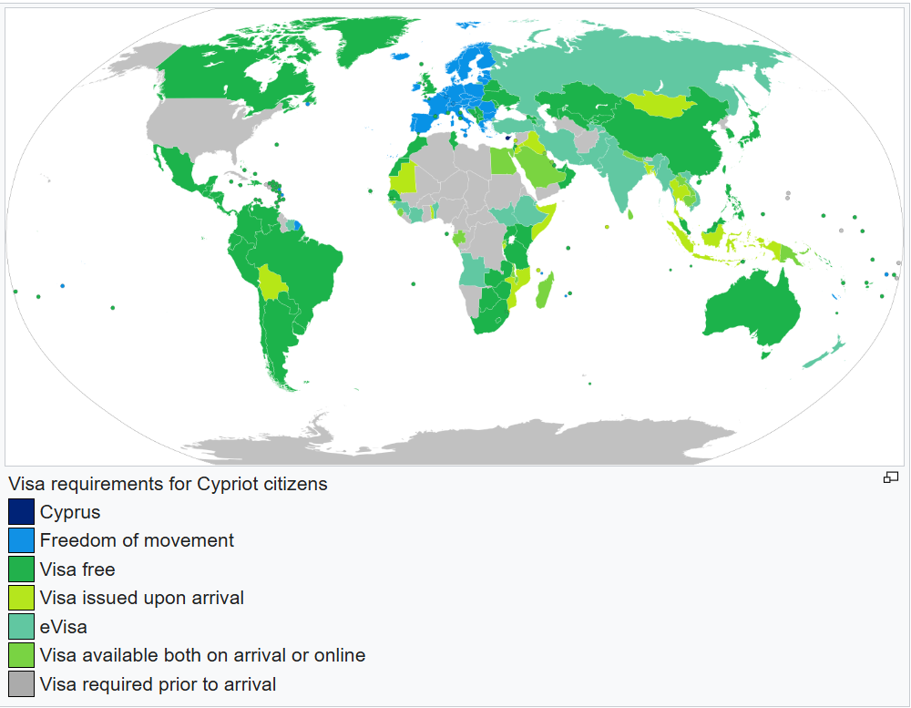 Cyprus recognizes dual citizenship and is one of the European Union members. Its passport is ranked 13th globally. Passport holders enjoy the freedom to travel (either visa-free or visa upon arrival) to 177 countries and regions worldwide (Sep 30th, 2025).