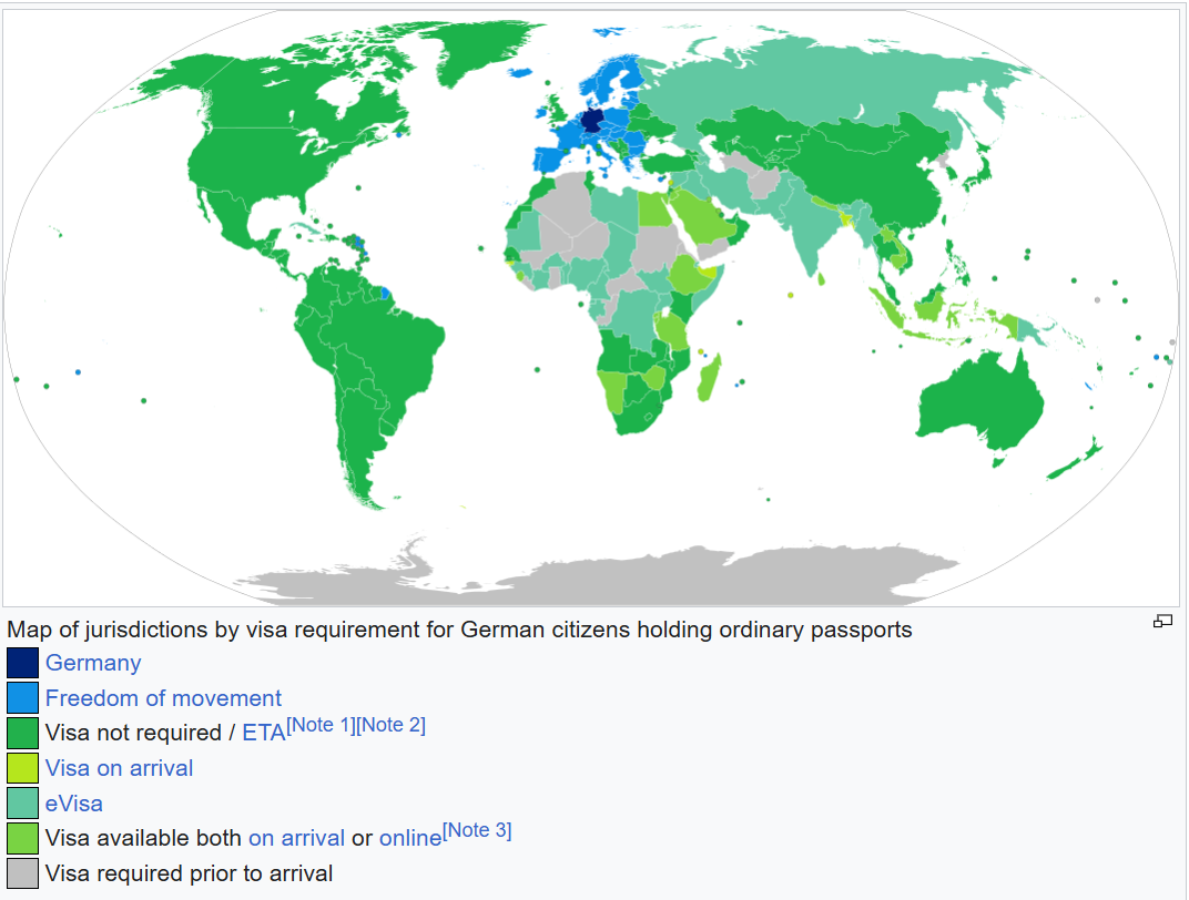 Germany recognizes dual citizenship, and its passport is ranked 4th globally. Passport holders have free access (either visa-free or visa-on-arrival) to 188 countries and regions globally (Now 2nd, 2025).