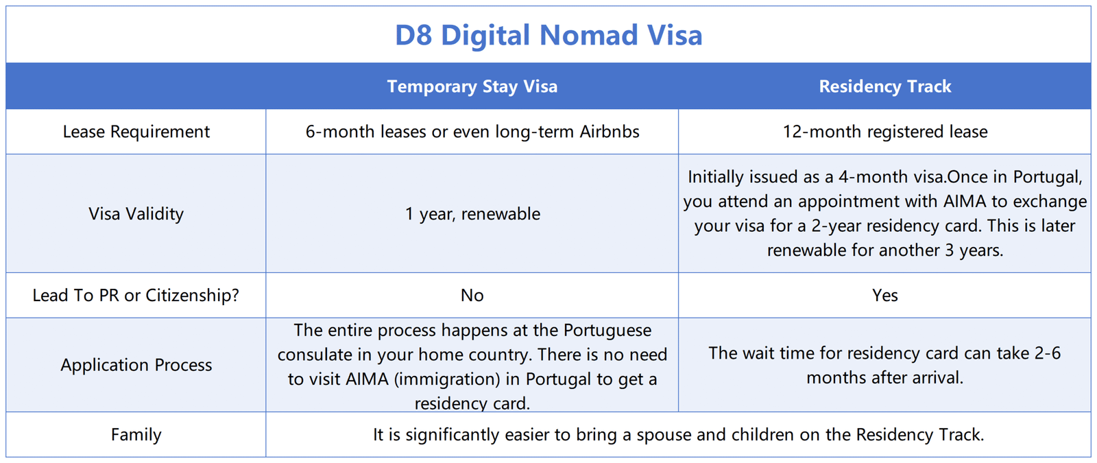 After five years of holding a D8 permit, you can apply for Permanent Residency. You’ll need to live in Portugal for at least six consecutive months each year—or eight months total if spread out—and once you secure PR, the rule relaxes. You only need to visit once every two years to keep your PR active.